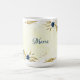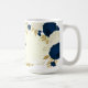 Mug botanique fleurs bleues marine & blanches avec feuilles dorées romantique