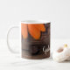 La charmante Rustic Orange Daisy et Barn Wood Mariage campagnard Coffee Cup peuvent être personnalisées avec les noms de la mariée et du marié pour créer un cadeau d'une nature pour les jeunes mariés, demoiselles d'honneur ou groommestres. Cette tasse nuptiale à thème de ranch personnalisé, décontractée mais classe, présente une photographie florale d'un style suranné, composée de pétales de fleurs de marbre orange et de bois d'écorce patiné brun à tête d'ongle rouillée.