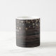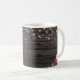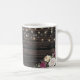 Mariage de bois rustique Conception de la Mug avec des détails de dentelle et chaîne de lumières. De magnifiques détails floraux sont en premier plan et rendent ce design élégant et chic. Le design est facile à personnaliser, si vous souhaitez modifier les polices s'il vous plaît Cliquez pour customiser plus loin. Ce design est parfait pour les mariages extérieurs et les mariages à thème de la grange. Conçu pour coordonner avec notre collection de mariages "Rustic Floral Wood Mariage".
