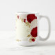 Mug botanique aux fleurs romantiques rouge foncé et blanches avec feuilles dorées