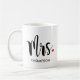 Tasse à café personnalisée avec Mme dans un script noir moderne avec un accent de coeur rouge mignon et votre nom de famille marié. Un cadeau parfait pour une future mariée, pour un couple marié, ou pour donner votre bonté le jour de la Saint-Valentin ! Visitez notre magasin ou notre collection ci-dessous pour le M. Mug qui coordonne.