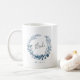 La tasse personnalisée comporte une couronne botanique d'aquarelle bleue et blanche avec "mariée" inscrite à l'intérieur en écriture manuscrite. Personnalisez avec votre date de mariage en dessous. Prenez un set correspondant pour toute votre fête de mariée pour une photo parfaite "se préparer" le matin du mariage! Matching Mother of the Bride, Mother of the Groom, Bridesmaid and Maid of Honor tasses disponibles dans notre collection Wild Azure.