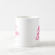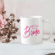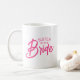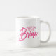 Cette tasse à café comporte un texte rose vif qui indique : Sœur de la mariée. Cliquez sur "Personnaliser ce modèle" pour modifier ou supprimer facilement le texte. Supprimez le texte pour qu'il indique simplement : Mariée, ou changez le texte de sœur à mère, amie, cousine, nièce ou ce que vous voulez. Cette tasse est parfaite pour les enterrements de vie de jeune fille ou les réunions.