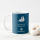 Elégant design bleu foncé et blanc avec un thème nautique. Personnalisez votre nom dans le modèle. Décoré d'un voilier glissant par, et d'une icône de navigation.