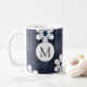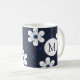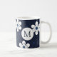 Joli motif floral moderne bleu marine et blanc sur tasse personnalisée.