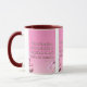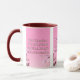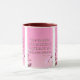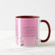 Cette tasse à deux tons présente un design qui comprend une police d'impression Hammersmith One avec des lettres blanches, un contour rose foncé avec le verset "Mark 10:9" de la Bible KJV sur une image affichant un dos rose avec des fleurs roses et blanches placées sur le dessus de ce thème basé sur la foi. Ce verset fait référence au livre de Marc 10ème chapitre montrant le 9ème verset de ce thème de citation de la Bible de la Bible du Roi Jacques. La jante et la poignée sont émaillées dans des couleurs assorties disponibles en 11 onces ou 15 onces de micro-ondes de taille et lave-vaisselle en céramique de construction sécuritaire.