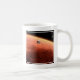 Le concept artistique de la sonde spatiale Mars Science Laboratory approchant Mars. Le rover Curiosity se cache en toute sécurité à l'intérieur de l'aérocoque du vaisseau spatial.