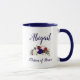 Cette jolie tasse à café mariage de bouquet bleu marine et marsala peut être customisée avec le matron du nom d'honneur dans élégant écriture bleu marine. Vous pouvez trouver des articles mariages correspondants dans notre collection Boho Navy Burgundy Pink Floral.