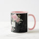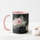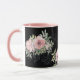 Une tasse à café à écritures inspirantes représente une belle aquarelle rousse, des fleurs roses et de la verdure avec un arrière - plan noir. Il présente les paroles de Jésus dans une partie de la Bible Verse Matthieu 28:20, "Je suis avec toi toujours".