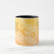 Citation christienne inspirante tasse à café représente une prière et une écriture encourageante sur un design abstrait aquarelle avec des tournesols blancs simples et un arrière - plan jaune et orange. Il contient une partie des Béatitudes que Jésus a prononcées dans le Sermon sur le Mont et enregistrées dans la Bible Verse Matthieu 5:8, "Heureux sont les PURE dans le COEUR, car ils verront Dieu." Tout le texte peut être customisé aux détails de votre choix.