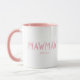 Conception de tasse de café MawMaw avec année de création avec un jeu de polices tamponnées rose sur fond blanc. Cliquez sur Personnaliser pour modifier la couleur de fond !. Visitez notre boutique pour voir cette tasse dans un grand assortiment de noms de grands-pères.