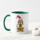 This adorable illustration features Max the Dog sitting patiently, fully embodying the holiday spirit—even if he looks slightly confused by it all! He is dressed in a floppy red Santa hat and a chunky red collar, which is charmingly adorned with a green Christmas ornament. Max's classic, expressive eyes and loyal posture make this image the perfect, heartwarming graphic for anyone who loves the true hero of the Grinch story!