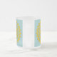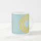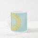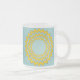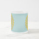 Conception Concentrée. Deux ensembles de médaillons d'or (3 cercles concentriques zig-zag) de chaque côté de cette tasse. Obtenez un look totalement différent en Customisant la couleur arrière - plan (par défaut bleu clair).