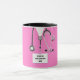 Cadeau de docteur créatif, remise de diplôme, anniversaire ou mug de vacances, avec un pantalon d'hôpital rose, un stéthoscope et un couteau suisse drôle. Pour personnaliser, éditez le texte pour ajouter le nom du médecin.