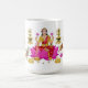 Méditez sur la bonne chance tout en contemplant la vapeur se levant de cette tasse remplie de votre boisson chaude de matin. Elle est richement ornée avec des images des pièces d'or et de la déesse de la richesse.