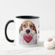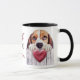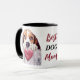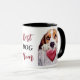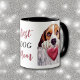 "Best DOG Mom" déclare cette mignonne tasse au centre. L'image de chaque côté est celle d'un adorable Beagle qui surplombe une clôture en bois et qui offre un coeur rouge étincelant. Parfait pour la Fête des Mères ou son anniversaire ! Tout le texte est personnalisable, vous pouvez donc le modifier pour Papa sur Fête des pères, aussi.