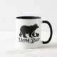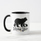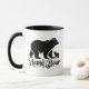 Silhouette noire d'un ours-mère avec un petit ourson marchant à côté, "Mama Bear" en caractères gras en dessous, accent or sur les bords.