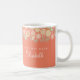 Chef cuisine rustique vintage personnalisée chic tasse à café avec délicat rose pâle, crème pêche, et fleur sauvage florale verte sauge bordé d'un arrière - plan corail orange (changeable). +++++++++++++++++ Il peut s'agir d'un cadeau personnalisé pour un amant gourmet en cuisine, pour un anniversaire, un anniversaire, un Noël, une douche nuptiale ou un cadeau mariage.