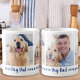 Meilleur Papa Chien Jamais... Surprenez votre papa chien préféré que ce soit son anniversaire, sa Fête des pères ou Noël avec cette super mignonne tasse de collage photo personnalisée. Customisez cette tasse de papa chien avec 3 des photos préférées de votre chien, et personnalisez la photo centrale avec le nom. Grand cadeau du chien. DROIT D'AUTEUR © 2020 Judy Burrows, Black Dog Art - Tous droits réservés. Meilleur Chien Papa Jamais Amusant Bleu 3 Photo Café Mug