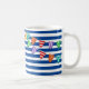 Une fabuleuse tasse de hublot marine rayé bleu large surfer, idéale pour ajouter le nom de votre enfant et un message spécial. À l'arrière, il y a le bunting de célébration, la tasse balnéaire idéale pour votre maison de vacances, ou donner comme un cadeau d'encouragement.