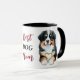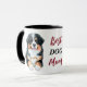 "Meilleure maman de CHIEN" déclare cette tasse mignonne au centre. L'image de chaque côté est une image adorable d'un berger de montagne bernois offrant un cœur doré. Parfait pour la fête des mères ou son anniversaire ! Tout le texte est personnalisable, vous pouvez donc le modifier pour papa à la fête des pères également.