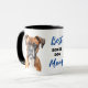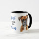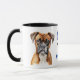"Meilleure Maman de Boxer" déclare cette tasse mignonne au centre. L'image de chaque côté est un beau portrait de Boston Terrier noir et blanc. Tout le texte, en noir et bleu, est personnalisable, vous pouvez donc le changer pour Papa ou quelqu'un d'autre.