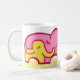Montrez votre amour à votre maman avec ce meilleur maman du monde des éléphants graphiques rose et jaune serrant la tasse. Idéal pour un cadeau de jour de mère. Illustration et dessin unique de Sarah Trett.