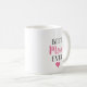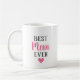 Une tasse de café Meilleure Maman Ever propre et moderne avec des lettres en écriture rose et noire gras et un accent de cœur assorti. Tout le texte et les couleurs sont entièrement modifiables. Un cadeau doux et simple pour la fête des Mères, un anniversaire ou juste pour dire à maman exactement ce que vous ressentez.