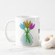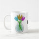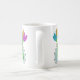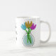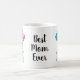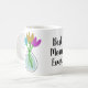 Rends ta mère heureuse avec cette jolie et mignonne tasse. Le design présente trois fleurs en bleu, or et rose avec un effet parties scintillant dans un vase rempli d'eau. La conception typographique dit "Meilleure maman jamais", mais vous pouvez la modifier en utilisant les outils de conception.