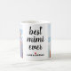 Un mug photo audacieux et moderne Meilleure Mimi Ever avec deux photos de portraits préférés, un script noir ludique, un accent de cœur rouge et les noms des petits-enfants. Le texte Mimi peut être changé en n'importe quel nom de grand-mère préféré, et tout le texte, les photos et les couleurs sont entièrement modifiables. Un souvenir attentionné pour la fête des Mères, un anniversaire ou la fête des grands-parents de la part des petits-enfants.