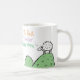 Mug pour un enseignant. Drôle dessin animé d'un mouton au sommet d'une colline. Le mouton dit "Best Baaa None". Le design se répète de part et d'autre.