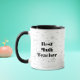 Super cadeau mathématique pour le meilleur professeur de maths que vous connaissez. Soit si c'est quelqu'un de votre famille, soit votre professeur préféré, cette tasse est le plaisir du destinataire. La tasse a un arrière - plan blanc où des formules mathématiques douces, des équations et des graphiques sont écrits à la main en gris. Sur le motif, on lit "Meilleur professeur de mathématiques", mais on peut le personnaliser si nécessaire. Illustré et dessiné par Patricia Alvarez.