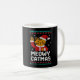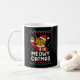 Cute festive cat in knitted look with Santa outfit and winter snow details. Perfect for holiday humor fans who enjoy cozy seasonal themes.