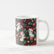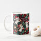 Ces tasses personnalisées sont le cadeau idéal pour tout amoureux des chats. Ils ont trois adorables chatons portant des chapeaux de Père Noël et jouant avec des ornements des deux côtés, et votre nom ou message au milieu. L'arrière - plan est vert festif avec des baies rouges et des accents dorés. Ces tasses rendront votre café ou thé plus agréable et confortable cette saison de Noël.