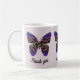 Éclairer la journée de quelqu'un et lui faire savoir combien ils sont appréciés avec cette tasse personnalisée. Cette tasse de remerciement comporte un motif de grands papillons lumineux. Les couleurs sont serrées les unes aux autres, donnant à ces papillons un aspect moderne et contemporain. Les couleurs vives sortent de l'arrière - plan pastel. Les mots d'appréciation peuvent être facilement customisés pour répondre à vos besoins.