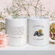 Faites savoir à votre père combien il compte pour vous le jour de votre mariage avec notre magnifique et spéciale tasse de mariage personnalisée. Caractéristiques d'illustrations de chaussures à l'aquarelle avec des fleurs. Poème ou message personnalisé au dos. Personnalisez avec la date de votre mariage et votre nom. Un cadeau beau et attentionné pour papa le jour de votre mariage qu'il chérira.