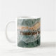 Cette tasse d'appréciation de l'enseignant présente une photo de gros plan d'un morceau de minéral fluoré. Cette belle pierre de taille présente des tons verts époustouflants et un ruban jaune de couleur horizontale ainsi que des sangles en cristal. Le motif qui en résulte crée un design naturel abstrait pour soutenir les mots de remerciement. "Merci d'être mon professeur" peut être customisé pour répondre à vos besoins.