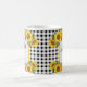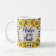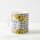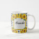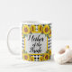 Une jolie tasse personnalisée pour la mère de la mariée avec un motif classique à carreaux noirs et des tournesols. Cette tasse est un excellent cadeau de faveur de fête pour la mère de la mariée à votre douche de mariage ou à la fête d'enterrement de vie de jeune fille. Un côté de la tasse dit Mère de la mariée. L'autre côté fournit un modèle de script où vous pouvez entrer le nom de maman. Découvrez notre collection Black Gingham & Tournesols pour plus d'idées de douche de mariage et de réception dans le même thème !