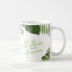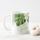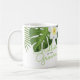 La mère florale pour la plage et botanique de la tasse de marié à la mode, les palmettes tropicales conçoivent. Elle lit la "mère du marié" dans le lettrage élégant et vert de manuscrit des deux côtés. Encadré avec les palmettes tropicales, le feuille vert de banane, et la conception botanique de fleur assez hawaïenne de plumeria aux nuances du vert sur un arrière - plan blanc. Assortit des mariages modernes, des mariages de plage d'été, des styles de mariage de jardin botanique, des modèles de couleurs verts de mariage, et des mariages tropicaux de destination. Cadeau élégant de noce pour des mères. La NOCE TROPICALE FLORALE ÉTANT ASSORTIE attaque et épousant la faveur les approvisionnements sont également disponibles dans notre magasin de Zazzle.com/angela65, aussi bien que toute autre mère des cadeaux de marié.