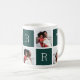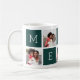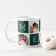 Déposez les fixations festives de cette période de fêtes avec cette tasse de collage photo de Noël, avec cinq carrés vert clair de forêt épelant "MERRY", en alternance avec 5 photos carrés dans une mise en page grille collage.