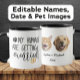 Rendez votre annonce de fiançailles encore plus adorable avec cette tasse drôle et personnalisée mettant en vedette vos animaux de compagnie ! Un côté indique *"Mes humains vont se marier !"* avec une illustration de pattes et d'anneaux mignons, tandis que l'autre côté présente votre chat et votre chien adorés avec vos noms et l'année de mariage. Un cadeau parfait pour les amoureux des animaux, les couples nouvellement fiancés, ou comme un moyen unique de partager la grande nouvelle. Tous les textes et images peuvent être personnalisés pour votre famille à fourrure !