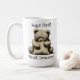 Cette tasse de café sucré est une chose adorable à regarder en première chose le matin. Cet ours en peluche mignon et vulnérable embrasse un coussin et se prépare mentalement pour la journée. Les câlins d'abord. Ensuite, la bravoure. Vous pouvez facilement changer le libellé de la tasse à quelque chose de plus personnel pour vous. Ou ajoutez votre nom ou celui d'un proche et donnez-le comme cadeau. J'ai créé cette tasse pour vous rappeler de vous traiter avec amour et compassion. Et une grande quantité de café ou de thé ne fait pas mal non plus !