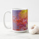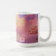 Le mur, dans l'original de ZoeSPEAK sur cette tasse inspirante, est un vieux mur de briques rouges avec une fresque sur enduit qui s'effrite. La fresque représente des nuages pouffis au coucher du soleil, tous roses et jaune vif en haut sur un ciel bleu foncé. Le message est de laisser entrer la lumière du soleil.