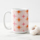 C'est élégant rétro starbursts motif en rose et orange sur arrière - plan clair. C'est une tasse à l'oeil pour tous ceux qui aiment les conceptions de l'ère atomique rétro