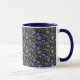 Add a little cheer to your day with a whimsical, hand-painted watercolor floral patterned mug, featuring playful purple-lavender daisy blooms dancing on a navy blue background.