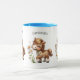 Une tasse avec une adorable illustration. Un petit poney marron se régalant de marguerites.