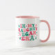 Cette tasse "In my Naughty Vegan Era" présente des lettres rétro avec des ornements de Noël.
