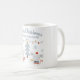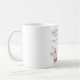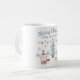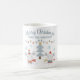 Cette tasse à café festive de Noël est décorée sur un thème boisé hivernal mignon. Une image de deux petites souris se trouve à côté d'un sapin de Noël, sous des lumières colorées et des flocons de neige. Un message de voeux "Joyeux Noël" est imprimé en haut, suivi d'un exemple de nom de famille. Vous pouvez personnaliser la tasse pour inclure votre propre nom ou texte personnalisé.