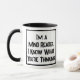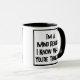 Drôle slogan sur une tasse à café à deux tons qui dit "Je suis lecteur d'esprit. Je sais ce que tu penses !". Mug à café en deux tons pour lecteur mental ou voyant. Texte en gras noir et blanc.