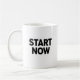 Bold motivational quote art strong geometric font with words "start now" on clean white background.